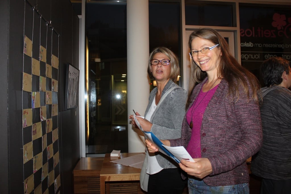 Am Wochenende zuvor haben meine Freundin Annette Gumpel und ich voller Hingabe die Bilder gehängt. Annette kann ich voll vertrauen, sie hat ein gutes Gespür für meine Bilder. Danke!